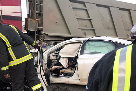 وقالت مصادر «عاجل»: إنَّ سيارة رجل الأمن دخلت تحت إحدى سيارات النقل الثقيل (التريلا)، ما أدَّى إلى وفاته على الفور.