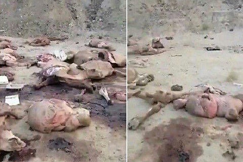 وقد أظهر مقطع فيديو متداول عبر مواقع التواصل الاجتماعي توثيق مواطن عثوره على أعداد كبيرة من الجمال والأغنام النافقة في منطقة الشميسي ووجود عمالة وافدة تستعد لتوزيع لحومها.