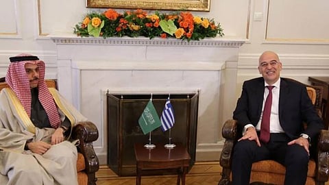 التقى وزير الخارجية الأمير فيصل بن فرحان بن عبدالله، اليوم الجمعة، وزير الخارجية اليوناني نيكوس ديندياس.