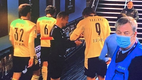 وكان الحكم المساعد الروماني، أثار الكثير من الجدل، بعدما نشرت محطة «بي تي سبورت» الرياضية، مقطعًا مصورًا وهو يطلب من المهاجم النرويجي التوقيع على البطاقات، في الممر المؤدي إلى غرف الملابس.