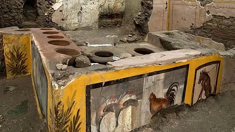 اكتشف علماء الآثار في بومبي ، المدينة الإيطالية الأثرية المدفونة في ثوران بركاني وقع عام 79 بعد الميلاد، متجرًا لبيع الأطعمة والمشروبات الساخنة للمارة الرومان.