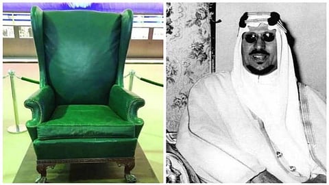 نشر الحساب الرسمي لمؤسسة الملك سعود، على موقع التواصل الاجتماعي «تويتر»، صورًا نادرة للكرسي الملكي الذي صنعته شركة «أرامكو» منذ 60 عامًا، بمواصفات خاصة للملك سعود –رحمه الله– ليجلس عليه عند زياراته للشركة.