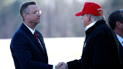 وصافح الرئيس الأمريكي النائب «دوغ كولينز» من جورجيا الأسبوع الماضي، وسافر مع «مات جايتس» من فلوريدا على متن الطائرة الرئاسية الأولى، أمس الاثنين.