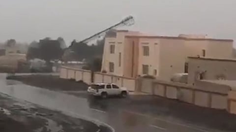 عرضت قناة الإخبارية مقطع فيديو يوثق لحظة سقوط برج اتصالات في عبالي بولاية المصنعة في عمان، جراء الإعصار شاهين الذي يضرب البلاد ودفع السلطنة إلى إعلان حالة الطوارئ في البلاد.