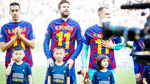 حرص لاعبو الفريق الأول لكرة القدم بنادي برشلونة الإسباني على دعم زميلهم المصاب الفرنسي عثمان ديمبلي، خلال مواجهة خيتافي، في المباراة التي تجمع الفريقين، ضمن منافسات الجولة الـ24 من الدوري الإسباني الدرجة الأولى «الليجا»، موسم 2019-2020.ودخل لاعبو برشلونة أرض ملعب «كامب نو» وهم يرتدون قميص الفريق الذي يحمل اسم اللاعب ديمبلي ورقمه.