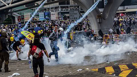 أطلقت الشرطة في هونج كونج الغاز المسيل للدموع لتفريق محتجين مناوئين للحكومة، يوم الأحد، مع احتشاد الآلاف في الشوارع للاحتجاج على خطة بكين لفرض قوانين الأمن القومي بشكل مباشر على المدينة.