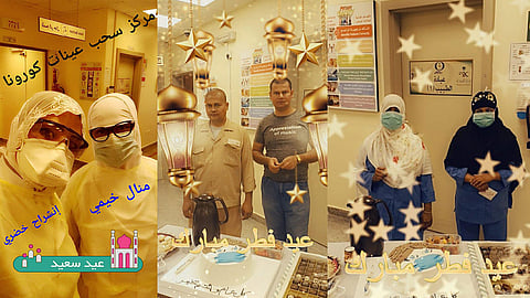 وقبل هذا التحول، كان الخوف والقلق والهلع ملازمًا للعاملين بالمركز لأكثر من شهرين، وسط الإجراءات الاحترازية المشددة، في ظل البعد عن أسرهم وأطفالهم، غير أن الممرضات (إنشراح خضري، بيلسان بغدادي، منال خيمي، مها صباغ) بادرن بالتخطيط والتجهيز للاحتفال بالعيد؛ رغم الظروف القاسية خلال فترة عملهن في سحب العينات للفيروس طول الفترة الماضية، وتعاهدن بالاحتفال بالعيد ومن وسط سحب العينات.
