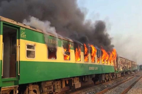 أعلنت الشرطة الباكستانية، اليوم الخميس، مقتل ما لا يقل عن 46 شخصًا في حريق شب في قطار، عقب انفجار موقد طهي كان يستخدمه ركاب لإعداد إفطارهم، ودمر الحريق 3 من عربات القطار قرب بلدة رحيم يار خان في إقليم البنجاب بجنوب باكستان، وقال قائد شرطة المنطقة أمير تيمور خان: إنَّ عدد القتلى ارتفع إلى 46. وفقًا لـ«رويترز».