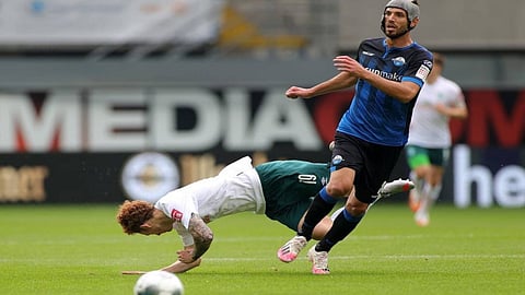ونال جياسولا البطاقة الصفراء السابعة عشرة هذا الموسم خلال مباراة بادربورن مع فيردر بريمن اليوم السبت.