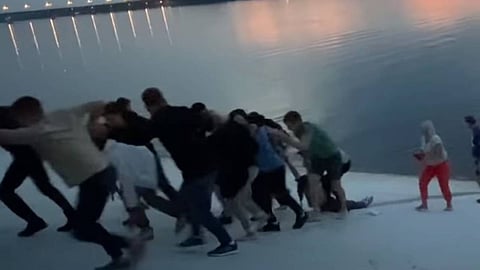 أعاقت الألواح الخرسانية الزلقة شابًا خلال محاولة إنقاذه امرأة كادت تغرق في أحد شواطئ روسيا إلا آن نحو30 شخصًا آخرين تدخلوا لمساعدته لإخراجها من المياه.