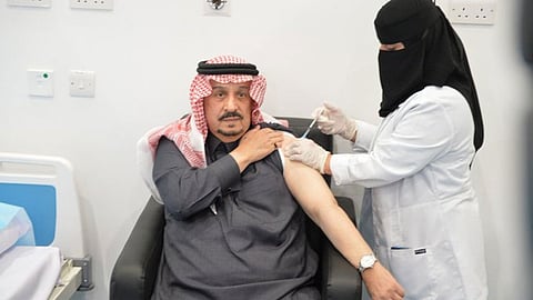 تلقى الأمير فيصل بن بندر بن عبدالعزيز أمير منطقة الرياض الجرعة الأولى من لقاح كورونا (كوفيد ١٩) بحضور وزير الصحة.