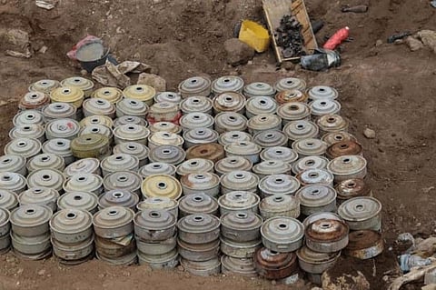 وتنوعت الألغام المنتزعة، بين 6 ألغام مضادة للأفراد و402 لغم مضاد للدبابات و11 عبوة ناسفة و1,197 ذخيرة غير منفجرة.