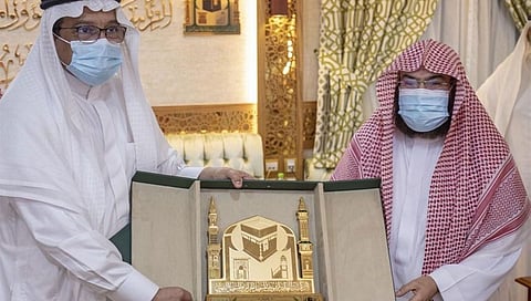 استقبل الرئيس العام لشؤون المسجد الحرام والمسجد النبوي، الشيخ الدكتور عبدالرحمن بن عبدالعزيز السديس، بمكتبه بالحرم المكي الشريف، وزير التعليم الدكتور حمد بن محمد آل الشيخ، بحضور رئيس جامعة أم القرى الدكتور معدي بن محمد آل مذهب، ووكيل الرئيس العام لشؤون المسجد الحرام أحمد بن محمد المنصوري، ووكيل الرئيس العام للشؤون الإدارية والمالية الدكتور سعد بن محمد المحيميد، وعدد من الوكلاء، والوفد المرافق لوزير التعليم.
