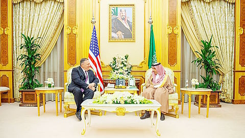التقى الأمير فيصل بن فرحان بن عبدالله وزير الخارجية، في الرياض اليوم، وزير خارجية الولايات المتحدة الأمريكية مايك بومبيو.