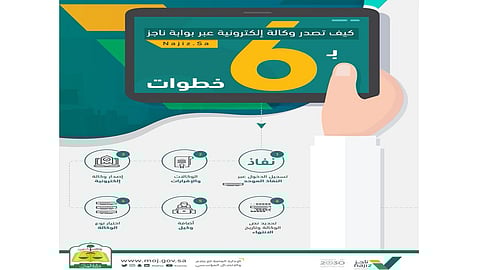 أعلنت وزارة العدل، اليوم الجمعة، عن (6) خطوات يمكن من خلالها إصدار وكالة الكترونية عبر بوابة «ناجز».