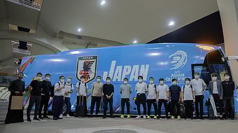 ونشر الحساب الرسمي للاتحاد السعودي لكرة القدم تغريدة عبر موقع التواصل الاجتماعي «تويتر» وكتب فيها: «بعثة المنتخب الياباني تصل إلى مدينة جدة، استعدادًا لمواجهة الأخضر الخميس المقبل، ضمن التصفيات المؤهلة إلى مونديال 2022».