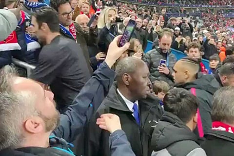 وحاول لاعب سان جيرمان، ماركينيوس، الذي ارتدى شارة قيادة الفريق في المباراة النهائية، احتواء الموقف وتهدئة المشجع.