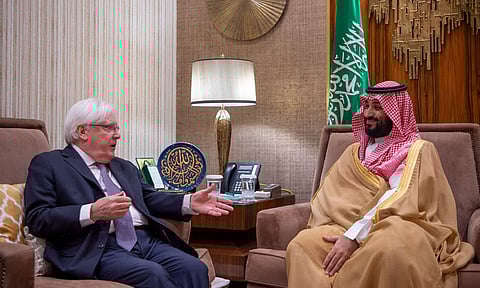 وقال بيان صادر، الجمعة، عن مكتب المبعوث الأممي: إنَّ جريفيس، التقى الأمير محمد بن سلمان في الرياض، الخميس، وناقشا سُبُل العمل معًا لإنهاء الصراع في اليمن، كما بحثا آخر التطورات في البلاد، وأهمية الحدّ من العُنف للتوصل إلى حل سياسي شامل في اليمن.