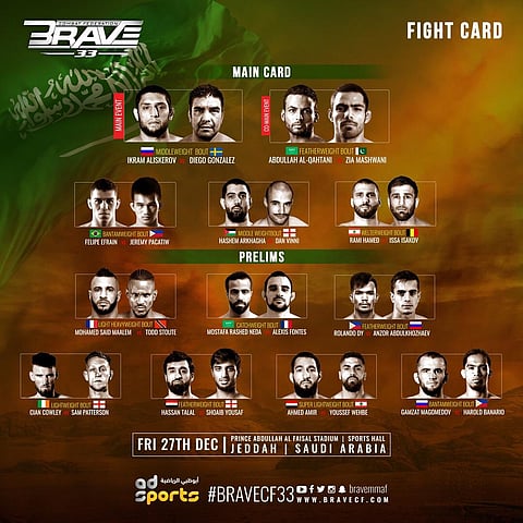 تنطلق غدًا الجمعة بطولة القتال الدولي «بريف33» بالشراكة مع الاتحاد السعودي لفنون القتال المتنوع، وذلك في الصالة الخضراء بملعب الأمير عبدالله الفيصل بجدة بمشاركة 24 لاعبًا يمثلون 15 دولة.
