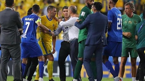 واشتبك المغربي عبدالرزاق حمد الله، مهاجم النصر، مع المدافع على آل بليهي عقب المباراة، لكن تدخل الحضور للفصل بينهما لعدم تطور الأمور.