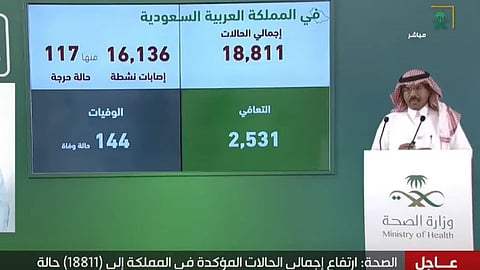 جاء ذلك بحسب المعلومات الرسمية، التي أوردها المتحدث باسم الوزارة، الدكتور محمد العبد العالي، خلال المؤتمر الصحفي اليومي لكشف آخر مستجدات فيروس كورونا في المملكة.
