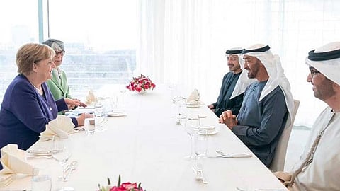وعبر حسابه بموقع التواصل الاجتماعي «تويتر»، قال الشيخ محمد بن زايد: التقيت المستشارة الألمانية أنجيلا ميركل في برلين.. ناقشنا تعميق شراكتنا الاستراتيجية وتعزيز الاستقرار في منطقة الشرق الأوسط ودعم جهود إرساء السلام في ليبيا.