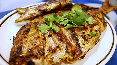 اليوم سنقدم لكِ وجبة السمك المشوي، على الطريقة الخليجية، وباستخدام التوابل الحارة، ومن مميزات الطبق أنه يحتوي على البطاطس، للحصول على وجبة كاملة العناصر الغذائية، سواء البروتين أو النشويات.