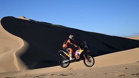 واصل الأسترالي توبي برايس «كاي تي أم»، التألق في فئة الدراجات لرالي دكار المقام للمرة الأولى في السعودية، بعدما انتزع فوزه الثاني في النسخة الثانية والأربعين، بإنهائه المرحلة الخامسة «العُلا – حائل» في الصدارة.