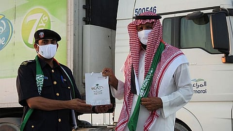 وزينت القيادة العامة لشرطة أبوظبي 90 من دورياتها بمدن أبوظبي والعين والظفرة بأعلام الإمارات والسعودية وشعار «معًا أبدًا» احتفاء باليوم الوطني الـ90 للمملكة.