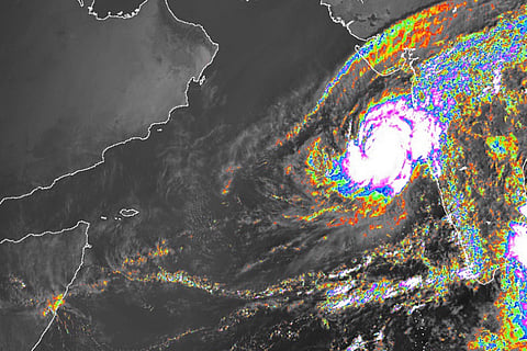 وتابعت هيئة الأرصاد، أن سرعة الرياح حول مركز الإعصار من 70 - 75 عقدة (125 - 135 كلم/ساعة)، موضحة أنه يتحرك باتجاه الغرب إلى الشمال الغربي داخل بحر العرب.
