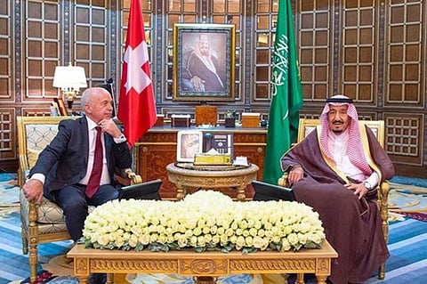 وتضمن البيان، أنه بناءً على الدعوة الموجهة من خادم الحرمين الشريفين الملك سلمان بن عبدالعزيز، قام الرئيس أولي ماورر رئيس الاتحاد السويسري بزيارة رسمية إلى المملكة (..) واستقبله خادم الحرمين، حيث عقد الجانبان جلسة مباحثات رسمية بنّاءة استعرضا خلالها العلاقات الثنائية المتميزة التي تربط البلدين الصديقين وشعبيهما، وسبل تطويرها في جميع المجالات، وتبادلا وجهات النظر حول مجمل القضايا الإقليمية والدولية ذات الاهتمام المشترك.