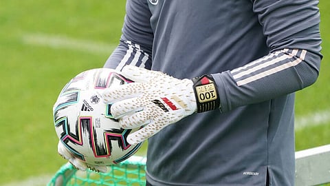 وارتدى نوير قفازات حارس المرمى مطبوع عليها الرقم 100 باللون الذهبي، خلال آخر تدريبات الفريق.