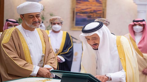 كما قدم سُلطان عُمان لخادم الحرمين الشريفين، وسام آل سعيد الذي يعد أرفع الأوسمة العمانية تقديراً له.