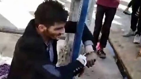 تداول نشطاء على مواقع التواصل الاجتماعي مقطع فيديو يظهر فيه شاب إيراني مقيد اليدين بعمود في شارع عام بمدينة مشهد ثاني كبريات مدن إيران بعد طهران، وقد تم تعذيبه برش رذاذ الفلفل والصعق بالكهرباء.