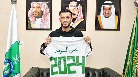 ونشر الراقي، عبر حساب النادي الرسمي على موقع التدوينات القصيرة «تويتر»، صورة قائد نسور قاسيون بعد مراسم توقيع العقد الجديد، ليرفع قميصًا يحمل الرقم 2024، معقبًا: «التاريخي عمر السومة أهلاوي لثلاث سنوات قادمة».