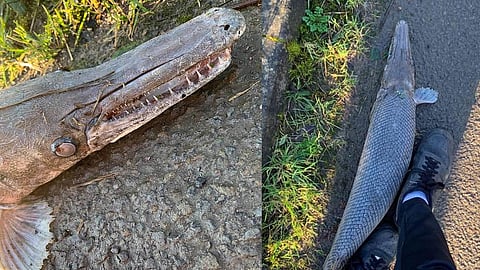 فاجأت «سمكة التمساح» التي ربما يصل طولها إلى عشرة أقدام الناس بعدما ألقت بها الأمواج على طريق للمارة في بريطانيا.