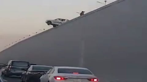 وأظهر مقطع فيديو وثقه أحد شهود العيان للواقعة، وتداوله مغردون على مواقع التواصل، المركبة وقد أوشكت على السقوط من فوق الحاجز الخرساني إلى داخل مخرج النفق، الأمر الذي سيعرض لمخاطر لا تحمد عقباها.