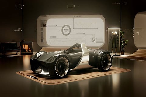 لم تقل الشركة الكثير عن السيارة الاختبارية، لكنها سيارة رياضية مصممة بشكل مستقبلي تمتلك مقصورة قيادة مفتوحة، ولا يوجد زجاج أمامي، ويجلس السائق في وسط السيارة ليجد نفسه ينظر إلى عجلة قيادة مستقبلية تحمل "نظارات رقمية متخصصة".