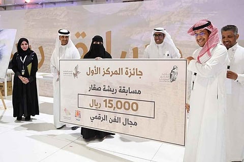 وأعلن المنظّم نادي الصقور السعودي عن الفائزين بجوائز مسابقة «ريشة صقار» التي نظمت خلال أيام المعرض وبلغت جوائزها ما يقارب 200 ألف ريال، توزعت على خمسة أقسام من الفنون التشكيلية.