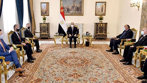 جاء ذلك خلال استقباله، اليوم الأربعاء، للمبعوث الأمريكي الخاص لمنطقة القرن الإفريقي، جيفري فيلتمان، بحضور وزيري الخارجية والري المصريين، سامح شكري ومحمد عبد العاطي، والسفير الأمريكي لدى القاهرة، جوناثان كوهين.