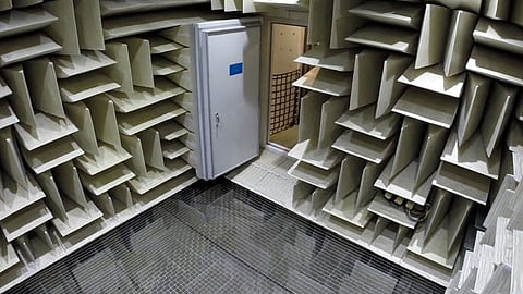 ويبلغ قياس الضوضاء بداخل الغرفة العادمة للصدى، 20.35 ديسيبلاً تحت الصفر، أي أقل بـ20 ديسيبلاً من عتبة السمع البشري.