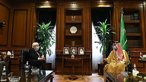استقبل وزير الدولة للشؤون الخارجية وعضو مجلس الوزراء عادل بن أحمد الجبير، في ديوان الوزارة بالرياض، اليوم، المبعوث الخاص للأمين العام للأمم المتحدة لدى اليمن مارتن جريفيث.