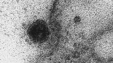 وفي هذه الصورة، نجد الفيروس على هيئة كرة سوداء تمسك بغشاء الخلية، وتطويها إلى الداخل من شدة ضعف هيكله أمامه وقوة شهيته.