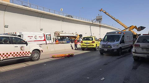 وقال المتحدث الرسمي لهيئة الهلال الأحمر السعودي بمنطقة الرياض ياسر الجلاجل، إن الهلال الأحمر من غرفة العمليات الموحدة ٩١١ يفيد بسقوط شاحنة من كبري، وتم إرسال ٣ فرق على الفور، منها فرقة استجابة متقدمة وفرقتان أساسيتان بزمن استجابة بلغ ٧ دقائق، والذي نتج عنه وفاة شخص وإصابة طفيفه تم علاجها في الموقع.