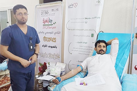 بالصور.. شباب الداير يتسابقون للتبرع بالدم إلى جنود الحد الجنوبي
