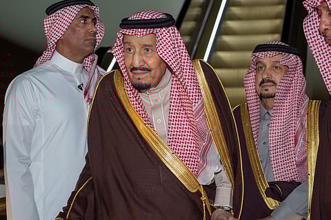 وكان في استقبال خادم الحرمين الشريفين عند سلم الطائرة بمطار قاعدة الملك سلمان الجوية، الأمير عبدالإله بن عبدالعزيز آل سعود المستشار الخاص لخادم الحرمين الشريفين، والأمير محمد بن سعد بن عبدالعزيز، والأمير تركي الفيصل بن عبدالعزيز، والأمير فيصل بن بندر بن عبدالعزيز أمير منطقة الرياض، والأمير فيصل بن سلمان بن عبدالعزيز أمير منطقة المدينة المنورة، والأمير محمد بن عبدالرحمن بن عبدالعزيز نائب أمير منطقة الرياض، والأمير عبدالعزيز بن سعود بن نايف بن عبدالعزيز وزير الداخلية، والأمير خالد بن سلمان بن عبدالعزيز نائب وزير الدفاع.