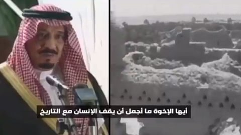 جاء ذلك عبر مقطع فيديو نشره الحساب الرسمي لقناة الإخبارية بموقع التواصل الاجتماعي «تويتر»، قال فيه الملك سلمان: «أيها الإخوة، ما أجمل أن يقف الإنسان مع التاريخ، في البلد التاريخي الدرعية!».