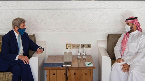 كما تناول اللقاء الحديث حول مبادرات المملكة النوعية في مواجهة ظاهرة التغير المناخي وخفض الانبعاثات، والحفاظ على البيئة ومكوناتها، وفي مقدمتها مبادرتي السعودية الخضراء والشرق الأوسط الأخضر، إضافة إلى جهودها خلال رئاستها مجموعة العشرين العام الماضي في دفع تبني مفاهيم الاقتصاد الدائري للكربون.