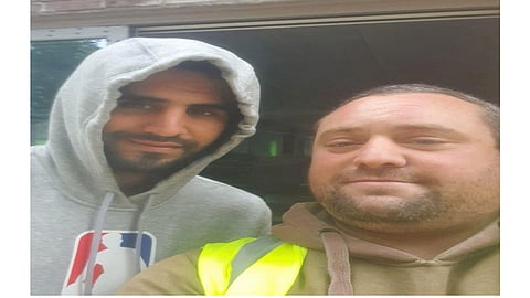 وطلب العامل كريج ويليس من الدولي الجزائري التقاط صورة معه في أول يوم له في موقع شقته الفاخرة الجديدة.