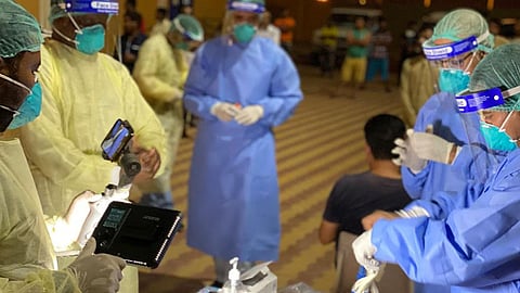 وتستمر فِرَق المسح الميداني بإدارة شؤون المراكز الصحية بالقطاع الجنوبي، على تكثيف أعمال المسح النشط لفحص العمال بمساكنهم، وأخذ عينات للحالات المشتبه بإصابتها، كما يتم إلى جانب ذلك تقديم التوعية الصحية اللازمة لهم، لإيصال المعلومة الصحية الصحيحة وضمان استفادتهم منها.